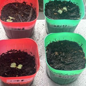 9月25日に種まき🌱 その2日後に発芽していました🌱 ダイソーのミニ白菜と葉大根です。 上手く育ちますように💖