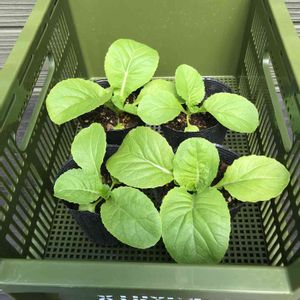 💚キャベツ&💚ミニ白菜 始めました~ 🌱極甘‼️スイーツキャベツ ( 定植後、約70~80日から収穫可能 ) メロン並みの最高糖度16度を記録 家庭でも簡単に作れる草勢の強い品種 球重は1.2~1.3kg程度で使いやすいサイズ。歯切れの良い葉質で芯の部分まで非常に甘味があります 収穫までに何度か霜に当てることにより糖度が上がっていきます。 寒期に入ってから糖度が上がりますので やや遅めの植え付けがおすすめです。 年内~冬どりに適した品種 【植え付け】 日当たりと水捌けの良い場所が適す。 鉢の場合は、大きめのプランターに野菜用培養土、元肥を施します。 植え穴は大きくあけ、やや浅植えにし たっぷり水をやってください。 【植え付けの管理】 ①🌱植え付け二週間後、追肥 ②アオムシ、ヨトウムシがつきやすいので野菜用殺虫剤や忌避材、ネットで防除する ③外葉がめくれて、定植後約70~80日ぐらいから収穫可能 玉の上部を手で押さえてかたくしまってきたら収穫時期 🌱【(F1)甘ベビー】ミニ白菜 定植後、約30日で収穫‼️ サイズ約300~500g 外葉から芯まで柔らかく甘味があって 生でも美味しい。 定植後二週間後に化成肥料をばらまき 追肥、土寄せ 📝10/12植え付けましたので タグの取説をそのまま備忘録📝