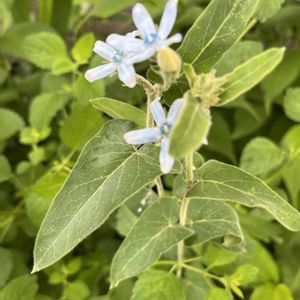 また いつの間にか開花 左端の葉に ブルースターの種が引っかかっています