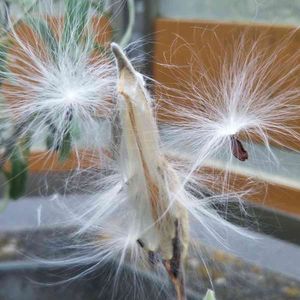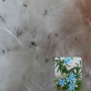 気がついたら、ブルースターの種が弾けてました! タンポポの綿毛の大きいような種です! 風で飛ぶ前に、急いで採取したところ、30粒ほど取れました! 来春はブルースター畑が作れそうです!