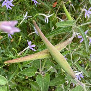 ブルースターの種 鞘が大きくて重いのに同じ向きで真っ直ぐ空に伸びていて面白い💕種が取れたら蒔いてみようと思います😊🎶 種蒔きしたバジルも大きくなりました🌱