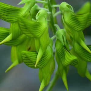 「クロタラリア・カニンガミー」 Crotalaria cunninghamii 原産 オーストラリア北部 通称 グリーンバードフラワー ※ユニークなグリーンの花を咲かせる。緑色の花が鳥の姿に見える?確かに🎶 国内の栽培は少ないとか? 京都府立植物園温室2025/12/7