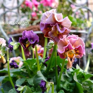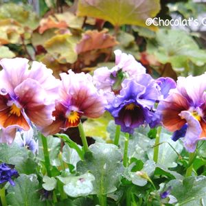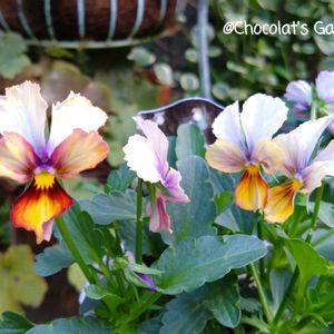 番外編♪ ❶お友達のご依頼を受けて、寄せ植え作成しました。メインに使ったのは ✳︎シフォンピーチ ✳︎ミステリアスバニー あとはリーフをあれこれと。 素敵に彼女にふさわしい寄せ植えになったかな? 喜んでいただけて、私も嬉しい😆 お花は幸せの連鎖を生み出しますね✨ ❷お揃いのアイアンポット うちのはこんな感じ。 メインは ✳︎ときめきビオラシフォンドレス ✳︎ときめきビオラバタースコッチ ✳︎ストックベイビー 実はシフォンつながり😆 ビオラパンジー寄せ植え、やめられませぬ。