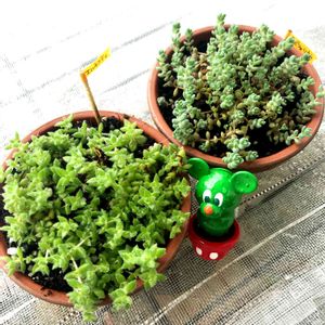 おはようございます! 今日は雨 エケちゃんは雨のかからない所へ避難させ うちのセダムちゃんん達は基本雨ざらしの放置プレー 道端のセダムちゃん達みたいにモリっとなって欲しいのであえて放置してます♡♡ 凶と出るか吉と出るかは分からないですが(°͈^°͈` ;) 今の所良い感じです! エルネスティちゃん可愛いお花咲かせてます♡♡