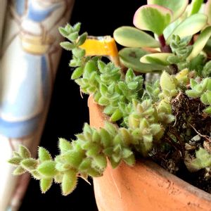 エルネスティ✨ セダムかと思いきやクラッスラ属です。 モケモケもりもり😊溢れそう! 元気もらえる🎵 ダイソーで見っけた流木風?の鉢に💕 これ、なかなかいい仕事してます。