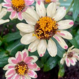 今日のお花💠ジニア 先週プランターに植えたばかりだけど 現在大雨警報発令中の庭でなんだかぐちゃぐちゃ💦 ピンクの入り方が様々で気に入っています😁