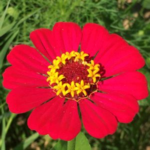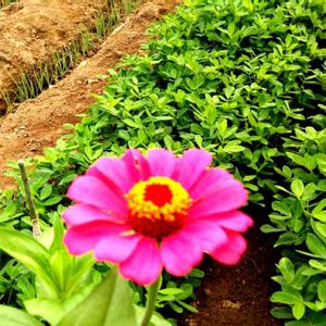 連日の猛暑☀️ 畑の花たちは、グシャリ🆘 そのなかで、百日草だけが頑張ってくれています。🌼🌼 この子は、小さめの花びらです。🥀🥀