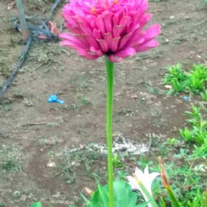 暑いなか☀️ 百日草は 元気に咲いています。こぼれ種からです。