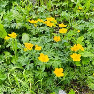 夏の高山を彩る黄色い花3種🌼名前が似ていて混同するので整理してみました サイズが大きい順に①②③ ①シナノキンバイは花径5cm程、草丈も50cm程で見応えがあります。 掌状に切れ込んだ葉は更に切れ込みます ②花弁に見えるのは萼片 花弁は、雌しべと雄しべの間にあるオレンジ色の小片 ③ミヤマキンポウゲは、平地に咲くウマノアシガタに似て花弁が艶々です 花径は1.5cm程ですが、草丈は30cm程。葉は細かく裂けてます ④ミヤマキンバイはキジムシロの仲間で花径が1.5cm程で、草丈も15cm程の小さな植物です 葉っぱは3小葉で、鋸歯が粗いです ⑤群生の様子 7/23.24立山 メモ📝 ■分布はいずれも中部以北の山岳