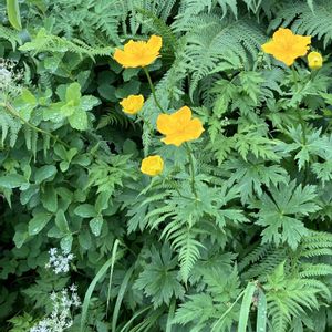 シナノキンバイ(信濃金梅) 深山の渓畔、湿地から高山の湿地に生える植物。 7月の終わり女神湖湖畔にて ‥‥‥‥‥‥‥‥ {🏷️ヒメリュウキンカ(姫立金花)の過去pic2/28と見比べ、花は似てるけれど葉っぱが違う〜🤯→直しました 2024.08.11}
