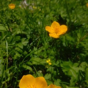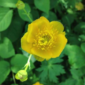 シナノキンバイ キンポウゲ科 キンバイソウ属 北海道〜中部地方以北の高山帯に生える お花は直径3〜4cm 花期7〜9月 元気の出る黄色です💛