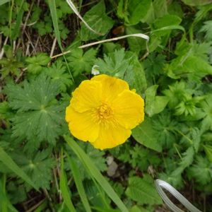 千畳敷カールに咲く高山植物③ シナノキンバイ(信濃金梅) キンポウゲ科キンバイソウ属の高山植物