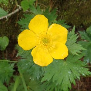 キンポウゲ科 信濃金梅 花弁は5〜7枚、葉は深い切れ込みあり