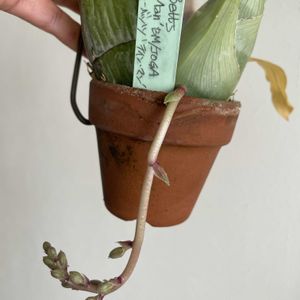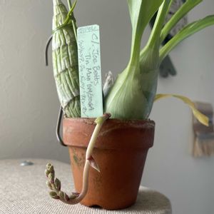 お花の終わったジョーベッツ 両脇から何か出てきました。 2度咲くこともあるらしいので 淡い期待☺️ 新芽であっても動いたことが嬉しいし。 4、5枚目。 お名前不明のタケノコです。 花つけることもなく、 猛烈な勢いで伸びてます。 これ、植え替えるのも悩ましい…