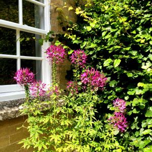 今日の花クレオメ 今までスルーしていたのに、この色に惹きつけられて初めて手にとったの〜💕 先週寄せ植えしたの、うまく皆とハモッてくれるといいんだけどなぁ🤗