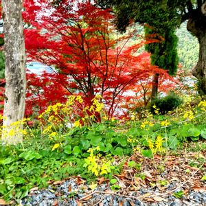 石蕗と紅葉🍁 かめやま公園展望広場で 朝のウォーキングで🚶♀️ 朝の散歩道