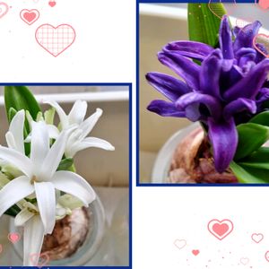 ヒヤシンスの水耕栽培 ピンクに続いてこちらも咲きました💜🤍🍀 🏷青い花で行く年来る年'23-'24
