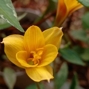 ハブランサス・アンダーソニー ☔️💛レインリリー💛☔️ ヒガンバナ科 ハブランサス属 梅雨時の花(レインリリー) 雨が降ると花茎が伸びて開花💛 葉はこのあと出てくる。 ヒガンバナバナの仲間✌️ マンションの緑地帯に突然 ニョキニョキと雨後の筍の如く 誰が植えたのかな🤔?