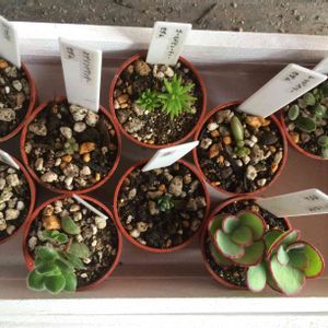 裏庭にポイポイしてたら いつの間にか根付いてた子や 芽が出てた葉挿しっ子(笑)