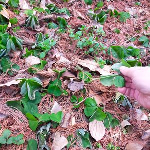 たくさん葉っぱが落ちてる…と思ったら生えてました😳 ピラピラしっとりとしてます、クローバー? 松林にて