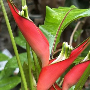 ヘリコニア-ストリクタ 今朝の自宅にて咲くヘリコニアで す。ヘリコニア属は熱帯アメリカや 熱帯地域🌴に100〜200種が分布 する。ヘリコニアはギリシャ神話に 登場する芸術の女神ミューズが住む ヘリコーン山に因む。花序は苞が重 なるように2列生し苞の中に淡緑色 の花を付けます。(*´-`)❣️