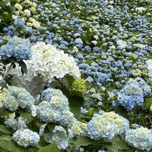 よへなあじさい園 今朝の本部町-伊豆味のよへなあじさ い園です。約40種類のアジサイが 植えられ一万株のアジサイからは 30万輪の花が咲いています。 青いアジサイの花が一面に広がり 圧巻でしたね〜。(*´-`)❣️ 5️⃣枚目はホットウェディングがとて も素敵だったので思わずパシャリ。