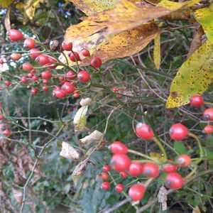 こんにちは😃 朝晩は寒くて、手も悴むようですが、昼になると小春日和の気持ちのいい毎日です。 荒れて足を踏み入れることができない竹藪。 その端にノイバラの赤い実がたくさんなっています。 ヨーロッパでは、似たノイバラの実はローズヒップと呼ばれて乾燥させてハーブティーとして使われるそうです。 小さくて食用には向かないかも知れませんが、何か使ってみたい気がします。🤔 散歩で出会うと何か懐かしい気分になります。😘