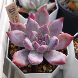 【エケベリア属 アガボイデス エボニー× ローズ ガーネット】 E. agavoides 'Evony'×E. 'Rose Garnet' ネームタグは、 【エボニー×ローズ ガーネット】 韓国のAir magic Nursery社 恐らく作出者は、 Chang-jo(チャン-ジョ)氏 「Evony」は「黒檀」 「Rose」は言わずと知れた「バラ」 「Garnet」は「石榴石(ざくろいし)」 ブラック&バラ色&深紅… 色を連想する名前が 面白いですよね( ˘ ³˘)♥