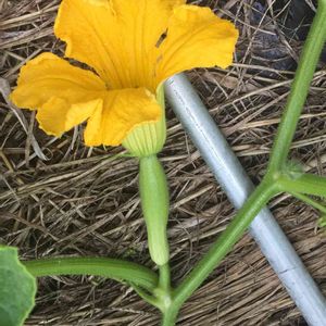 高山の奥、丹生川村の特産野菜、すくなかぼちゃ🎃 一個目が着果しました。二個目がなかなか着かない😆