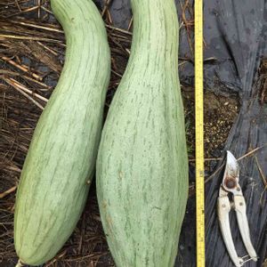 ハクビシンかアライグマか、スイカを食べた犯人に食べられないうちに収穫しました!これから1カ月ぐらい日陰で保管してデンプンの糖化を進めます。😊