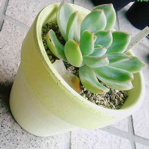 こんにちは☆ 本日2回目の投稿です!! picはエケベリア モーニングデュー 以前載せた子ですがみるみるうちに大きくなりまして、上からも下からも根が出てしまい根詰まりしたため、色塗りした素焼きに植え替えました!