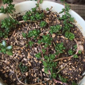 班入りグリーンネックレスと セダムの寄せ植えの鉢💚 セダムがモリモリしてきた👀💓