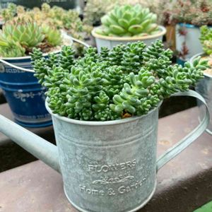 班入りグリーンネックレスとセダムの寄せ植え💚 ブレビフォリウムの花が咲いています👀💓