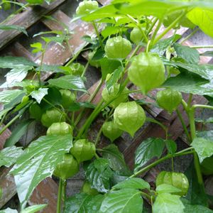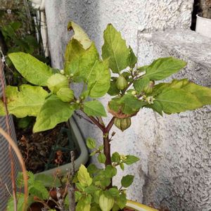 センナリホオズキ 大きく育ちました 畑の厄介者らしいですがこぼれ種が溝に生えてます可愛いホオズキが出来てます