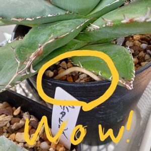 🏷日曜日は根っこの日 この前投稿したダイソー産アガベの根っこです。出てました😂笑 深鉢の方がいいのかな?🤔 ②は子株がちょこんと覗いていました👏 勝手にタグを付けさせて頂きます🙏💦スミマセン