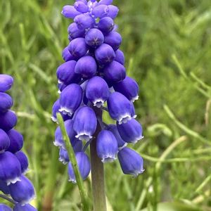 「ムスカリ」が原っぱの端の方で並んで咲いて、紫色に縁取っていた。