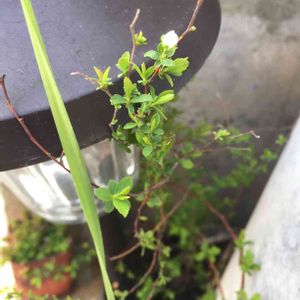 雪柳を分けて頂いて、 去年は、花咲かず、今年は白いものが! あの細い枝に、葉っぱがでてきた時の感動はなんとも言えません。 朝の、フジテレビの早く起きた朝は、が好きで、その中でも枯れたと思っていたらでてきたのはうれしいねといっていました。 うんうんと共感した朝。 花をつけてくれてうれしいです。