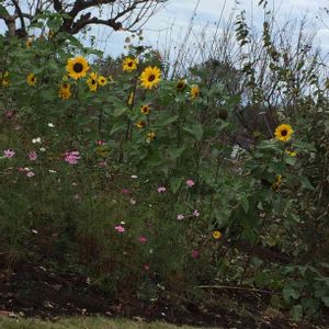 裏道をふと入ると今頃咲くひまわりとコスモスが! 寒川神社の近くで季節外れにひまわりを咲かせているとテレビで話題になっていましたが、ここでも見られてよかったです。 どなたかの畑でしょうが、うまく咲かせていて、元気一杯のお花はとても嬉しくなる景色でした。