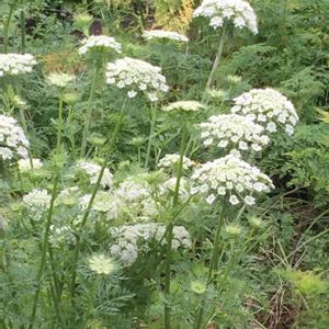 近所の畑にはにんじんの花。 にんじんの花が咲いて喜んでいるのは私くらいかな?