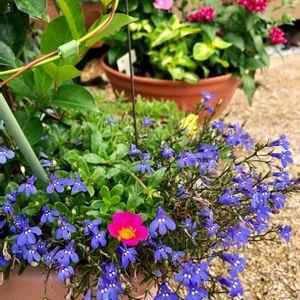 どこからか飛んできた ポーチュラカが咲きました🌸 寄せ植えの中で、 馴染んでる⁉︎😅💕