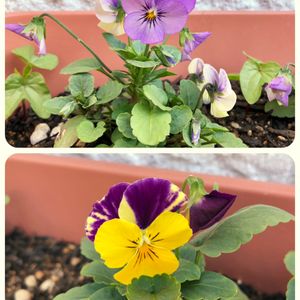 下のビオラはマーブル柄が 現れたので記念に📸👀✨ 上のビオラは、横から朝顔の芽が 現れたので記念に📸🌱❗️ 朝顔さん、抜こうか、 様子を見ようか、 どうしようか…😅💦笑