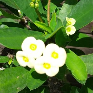 おはようございます リビングの窓際にあるユーホルビアマラソン 今年初めて3個お花が咲きました🤍 ユーホルビアの中でも1番の地味なお花