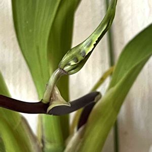 🏷️金曜日の蕾たち ①Brsa. Hibiya Star 'Spider Split' ブラッシア ヒビヤスター ‘スパイダースピリット' ② Den.Hamana Lake ‘Prism’ デンドロビューム ハマナ レイク ‘プリズム’ どちらも狂い咲きですね🫠