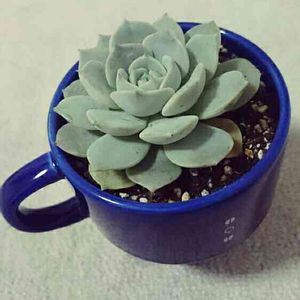 鉢が欲しくて買い物に行ったのに 売り切れで買えなかった日に…コーヒーのオマケでマグカップがもらえたらしく、旦那さんがいきなりずいっと出してきて「これに多肉植えなよ」って😓 いいの?って聞いたらオマケでもらえたものだからいぃでしょ、って(笑) 群青色が素敵だったしせっかくなので 植えてみました😌 結構、いぃ感じになったと思います✨←自画自賛w