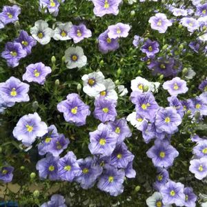 ニーレンベルギアオーガスタ。青と白の二種類が混在。 雨で憂鬱な時でも、こんな花を見ると気持ちが晴れる。