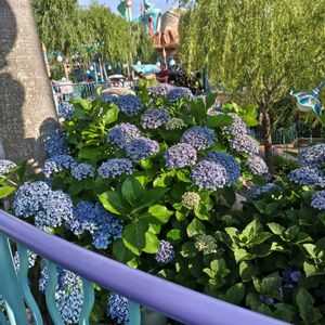 ディズニーシー💙 あちこちに アバカンサスのブルーと白のお花が咲き始めていて綺麗でした✨ 多分メラレウカと思われる大きな木が白いお花を咲かせていました🌲 樹々の奥の方で、鮮やかなラベンダー色のお花が咲いていました。 多分ジャカランダかな?💜