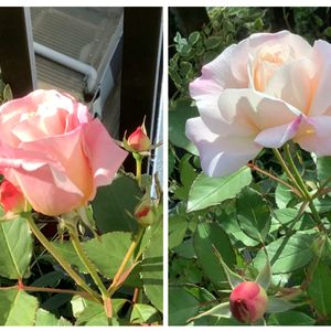 左(朝)→右(午後)同じ子で花の色がこんなに変わります!🌹暖かい日差しを浴びて綺麗に咲いてくれました😊