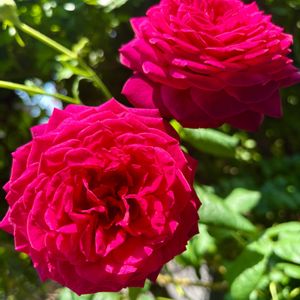 薔薇🌹🌹🌹 ジュビレ・デュ・プリンス・ドゥ・モナコ この前ね 朝 2階の窓から お庭を見たら プリンスモナコ様が 赤色になっていました~💓♥️❤️ 何故かしら(-ω- ?) でも綺麗🥰