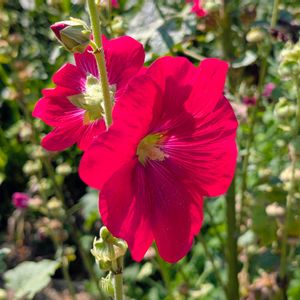 こんにちは🥵ご近所様のタチアオイですが雨が降らないのでツボミが多い(2枚目)です😥