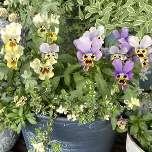 🥀ビオラ🥀寄せ植え🥀 タイミングを逃して 花が少なくなっちゃった😅 ちゃんとお世話しなくちゃね!